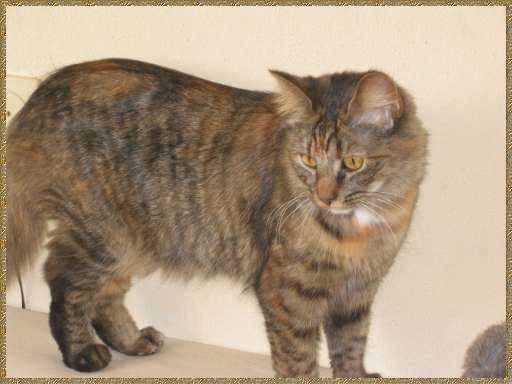 Babette is a 15 month old female tortie tabby Norwegian Forest cat, she's very playfull and together with Yoschi she's a two cat gang................